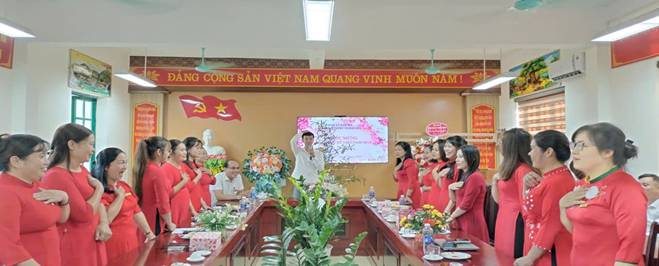 Tới dự buổi lễ có đc Nguyễn Viết Thanh – Bí thư chi bộ, Hiệu trưởng nhà trường cùng toàn thể viên chức, người lao động trong nhà trường. Buổi gặp mặt là dịp để ôn lại lịch sử, ý nghĩa của ngày Phụ nữ Việt Nam và cũng là dịp để gắn kết các thành viên trong nhà trường.
